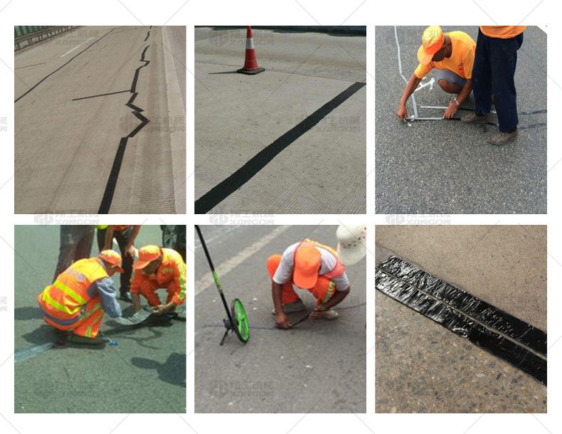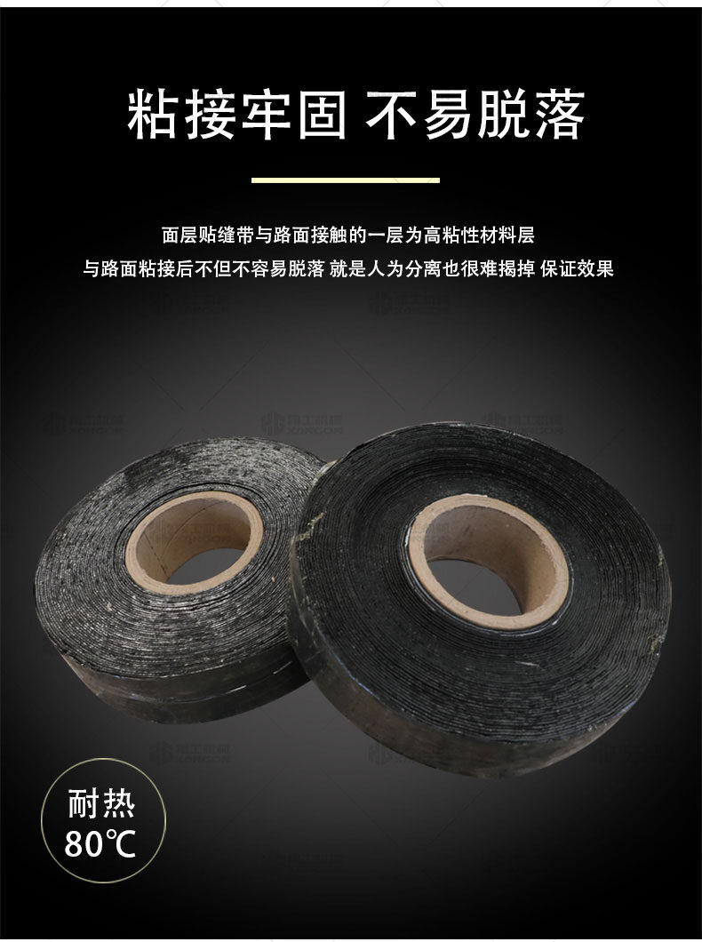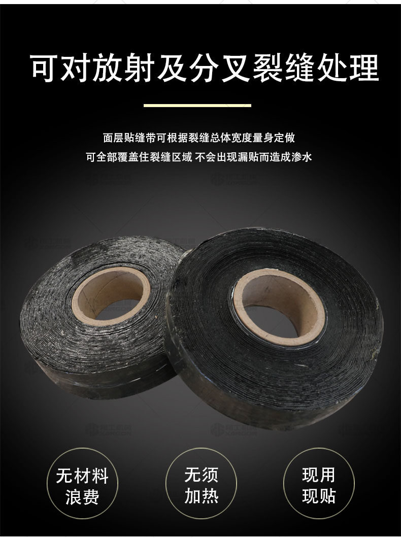 防裂貼(又稱抗裂貼)是由瀝青基的高分子聚合物、抗拉胎基、耐高溫并與瀝青相容的織物復合而成。將其貼于產生裂縫或剝落的瀝青混泥土面,能減少并阻隔其作用于路面的溫縮應力,因此也減少了裂縫反射穿過面層的趨勢,鋪設與路面因其將基層與上部磨耗層隔離開來,從而使上面層免受多向位移及剪切應力的影響,用于公路、橋梁、機場等。