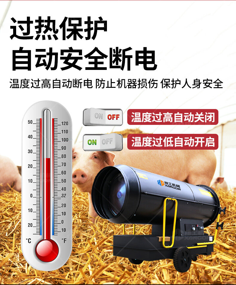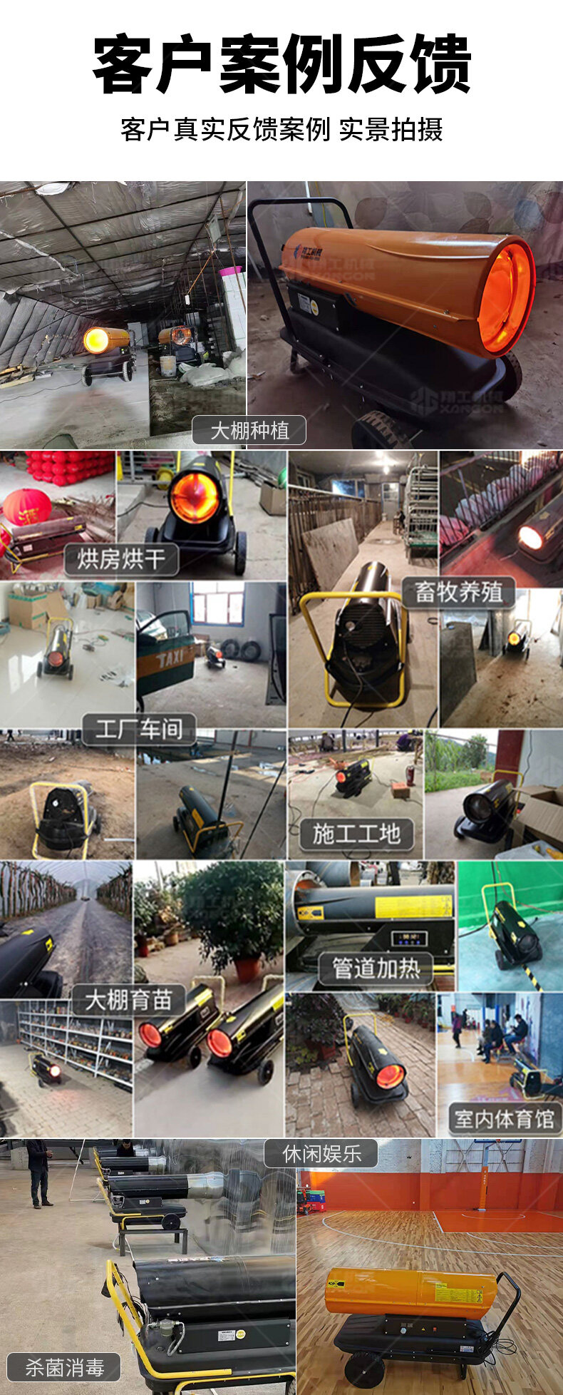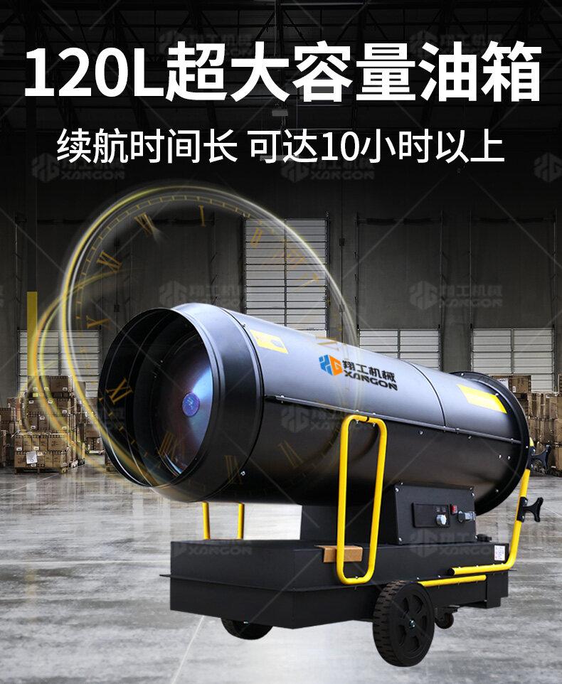 燃油暖風機可用于工廠倉庫,高大空間的供熱。 直燃熱風機,沒有煙囪; 燃料為柴油或者煤油; 氣體霧化燃燒器;