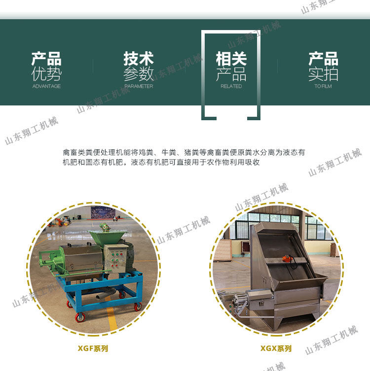 禽畜類糞便處理機能將雞糞、牛糞、豬糞等禽畜糞便原糞水分離為液態有機肥和固態有機肥。液態有機肥可直接用于農作物利用吸收