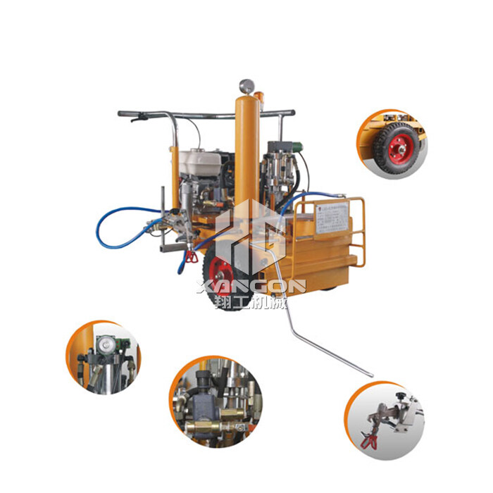 手推式冷噴劃線機為高壓力等流量型無氣噴涂機,該機利用汽油機驅動液壓系統帶動單柱塞泵,使涂料在機內形成高壓進行噴涂,所劃線厚薄均勻邊角齊,噴槍架導向桿升降設計,調節噴涂寬度準確方便,具有勞動強度低,施工快捷方便等特點。
