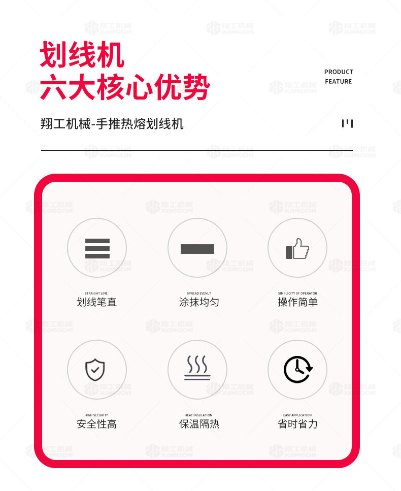 160手推熱熔劃線機采用普通鑄鐵劃線斗,同步離合玻璃微珠自動撒播器,具有結構簡單、輕便、價優、性能優良等特點。