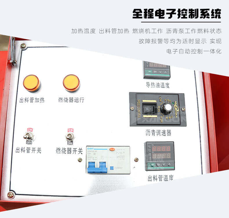 灌縫機(jī)主要有手推式和自行式手持灌縫管操作,采用進(jìn)口柴油燃燒器加熱。在工作時(shí)首先在料箱內(nèi)加入瀝青或灌縫膠,啟動(dòng)發(fā)電機(jī)供電,依次間斷打開(kāi)導(dǎo)熱油泵開(kāi)關(guān),燃燒器開(kāi)關(guān),出料管加熱開(kāi)關(guān);