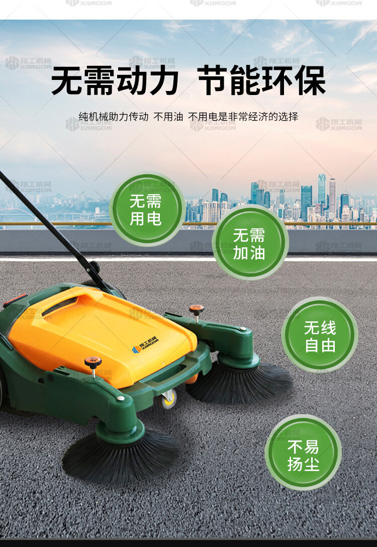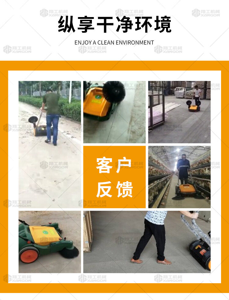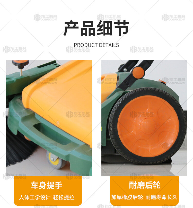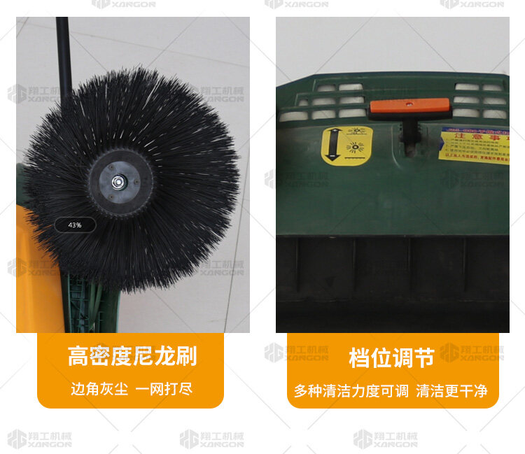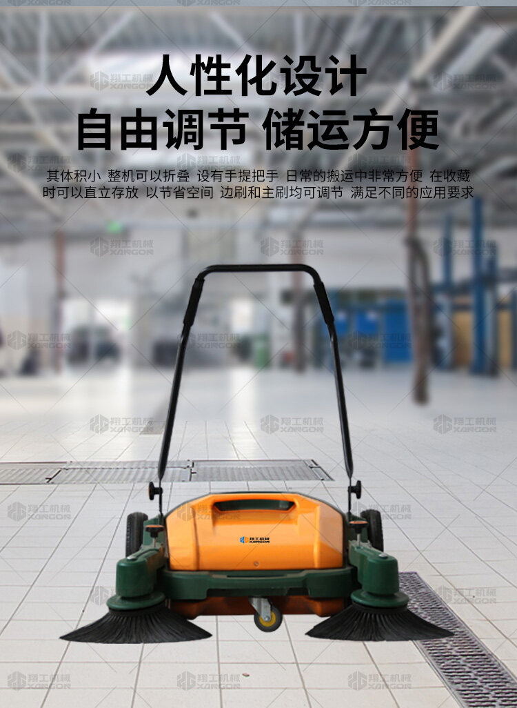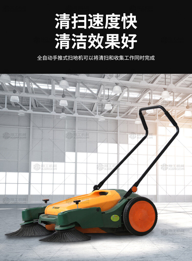 X920型全自動手推式掃地機能清潔房屋周邊范圍:包括小路,公路,車道和院子,能比普通的掃把和簸箕節省5倍的時間,清掃時垃圾被迅速的收集到塵箱,簡單、快速、干凈。