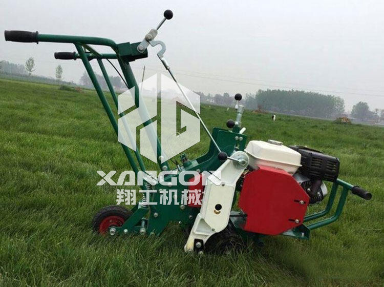 推進式起草皮機用于草皮移植。使用該機器,可以完全取代純手工操作,配套9馬力汽油發動機,動力強勁,卓效可靠,作業效率高,減少人工費用,切下的長條形草皮規格統一,易于收卷便于運輸,草皮移植后成活率高。