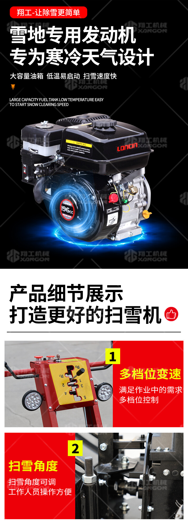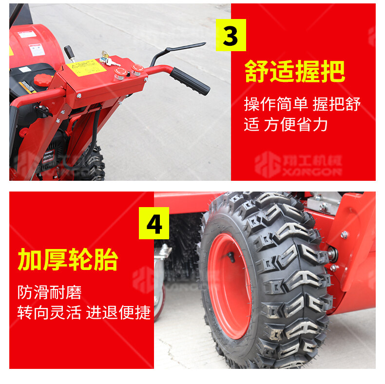 XG-8918小型掃雪機是一款地面拋雪機,路面拋雪機,道路拋雪機。這款拋雪機采用LC185F(D)S,OHW 4-stroke發動機,強勁有力。葉片高速旋轉將雪旋進掃雪車里,再通過導管運到儲雪箱中。其特點是:采用大功率主機,寬幅、高效,使用較廣。