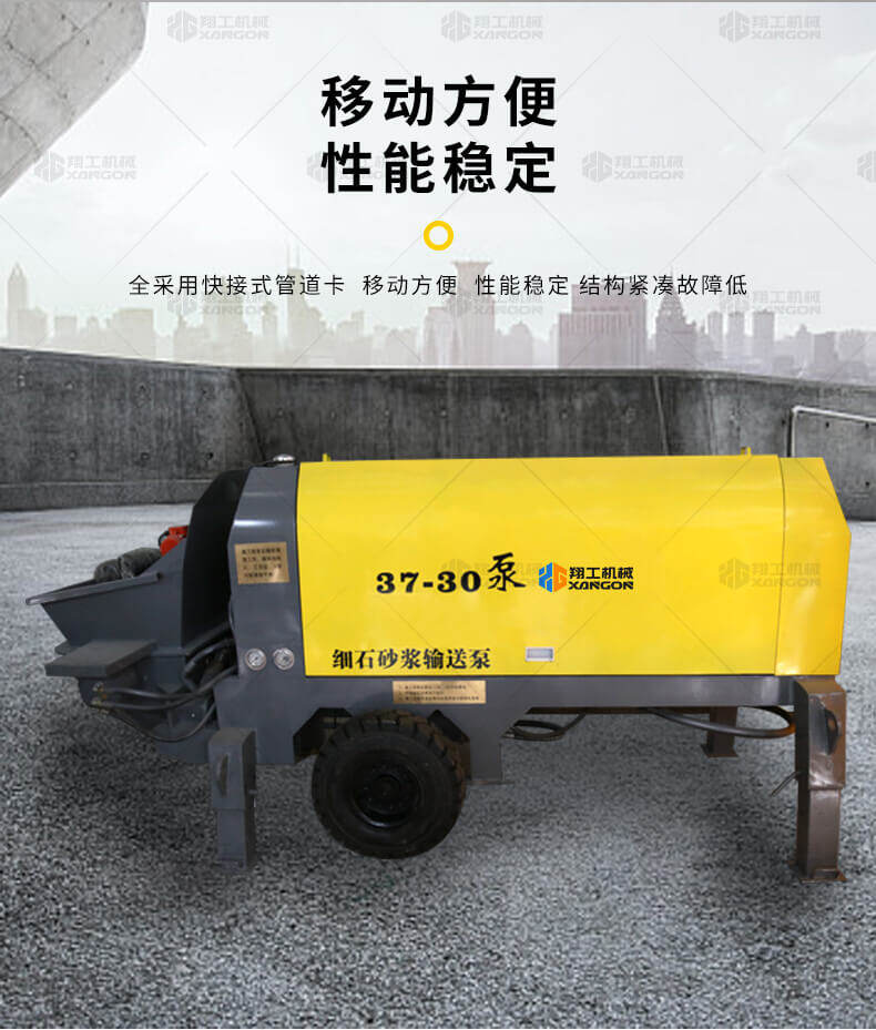 細石砂漿輸送泵是專業的砂漿輸送設備,可用于坡道灌漿,水平地面,隧道澆筑,模板灌漿。