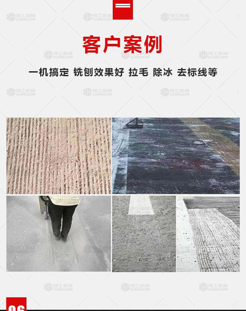 用于橋面鋪設瀝青或車間舊的混凝土地面重新攤鋪混凝土之前,清理水泥浮漿以及鏟平拉毛,也用于清理建筑施工中堅硬灰渣。