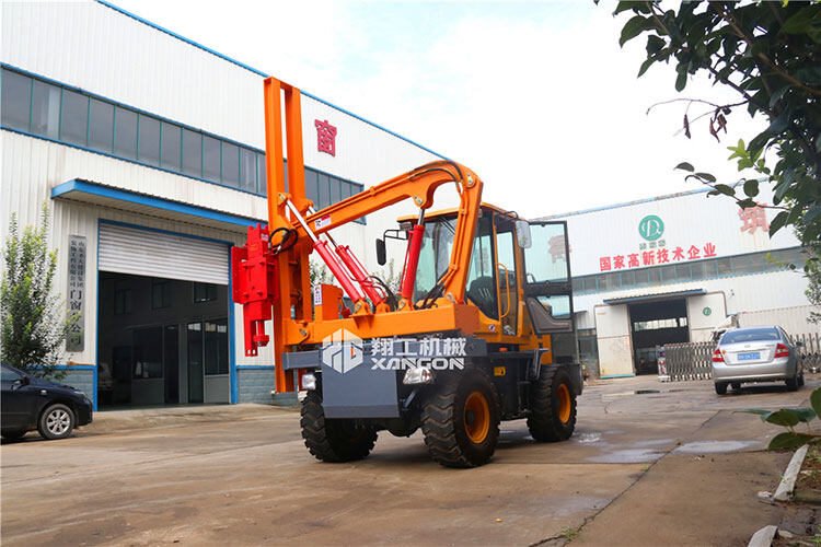 裝載機式護欄打樁機是根據市場需求和自身技術成熟的情況下面向客戶需求而研發的一款產品,是集裝載、打樁、鉆孔等功能為一體的新型產品。采用全新設計理念、精心研制整體功能,結構模塊化兼顧的設計思想,全封閉各木式安裝結構,更利于產品快速安裝和轉場,可廣泛運用于公路、高速等路面護欄的樁孔鉆進工作。