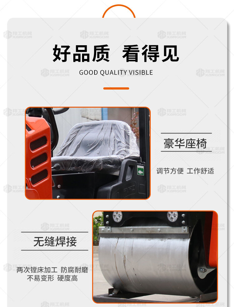 1t小型座駕壓路機體積小,行走靈活,可以用于瀝青壓實、回填作業(yè)、溝槽壓實作業(yè)、體育場地等壓實作業(yè),應用范圍廣,性價比高。經(jīng)典橘紅色款非常受歡迎。