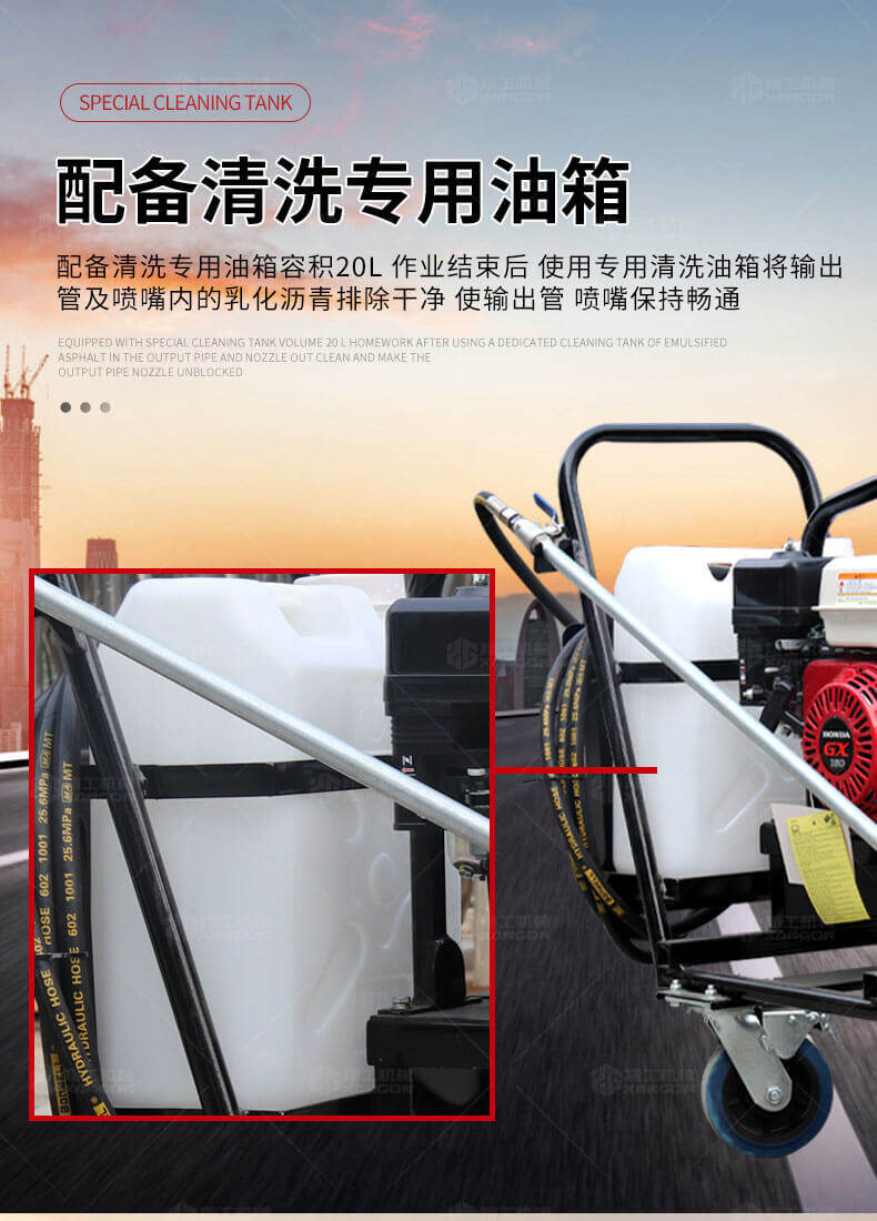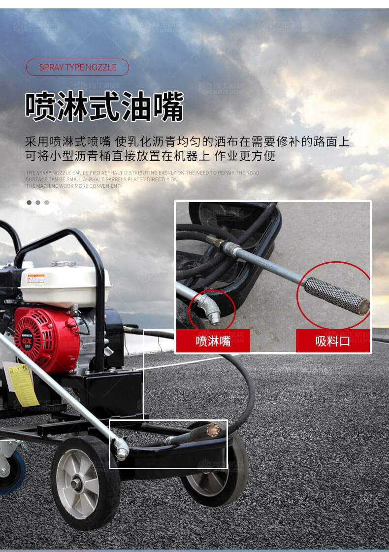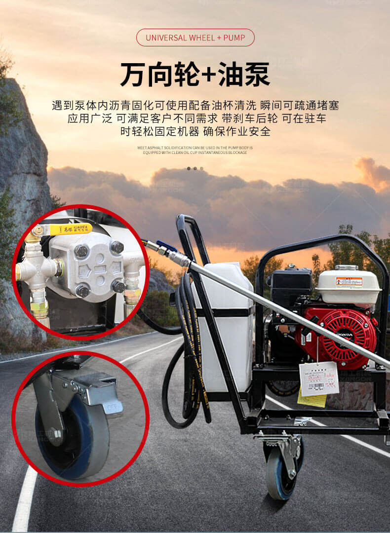 小型乳化瀝青撒布機用于修補瀝青道路上的坑槽,裂縫或對即將老化的路面進行表層噴層修復翻新,由于在養護瀝青道路時經常需要對路面均勻噴灑乳化瀝青或防水材料。