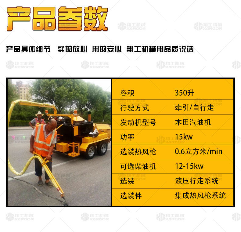 XGF-350系列路面灌縫機適用于瀝青路面或水泥路面裂縫密封灌縫,是中型路面裂縫養護工程量施工優選設備。