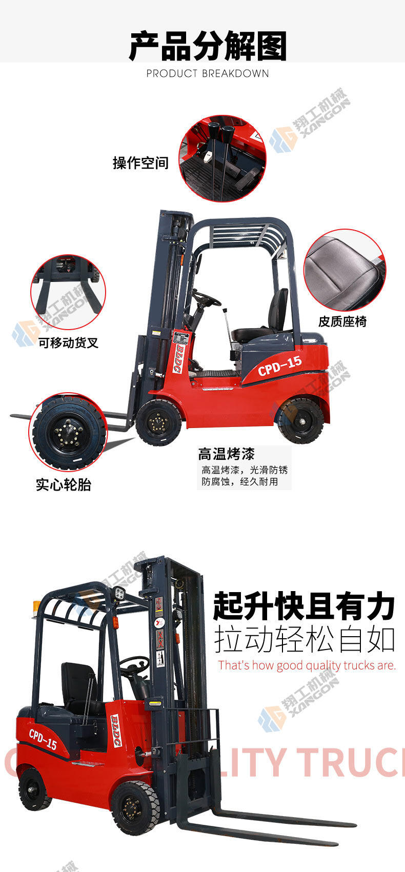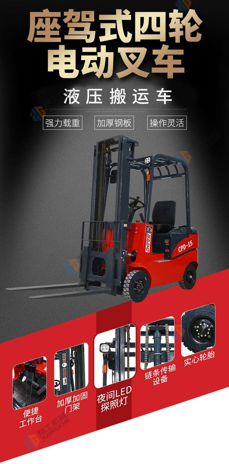 1噸2噸座駕式四輪電動叉車液壓搬運堆高車全電動電瓶叉車