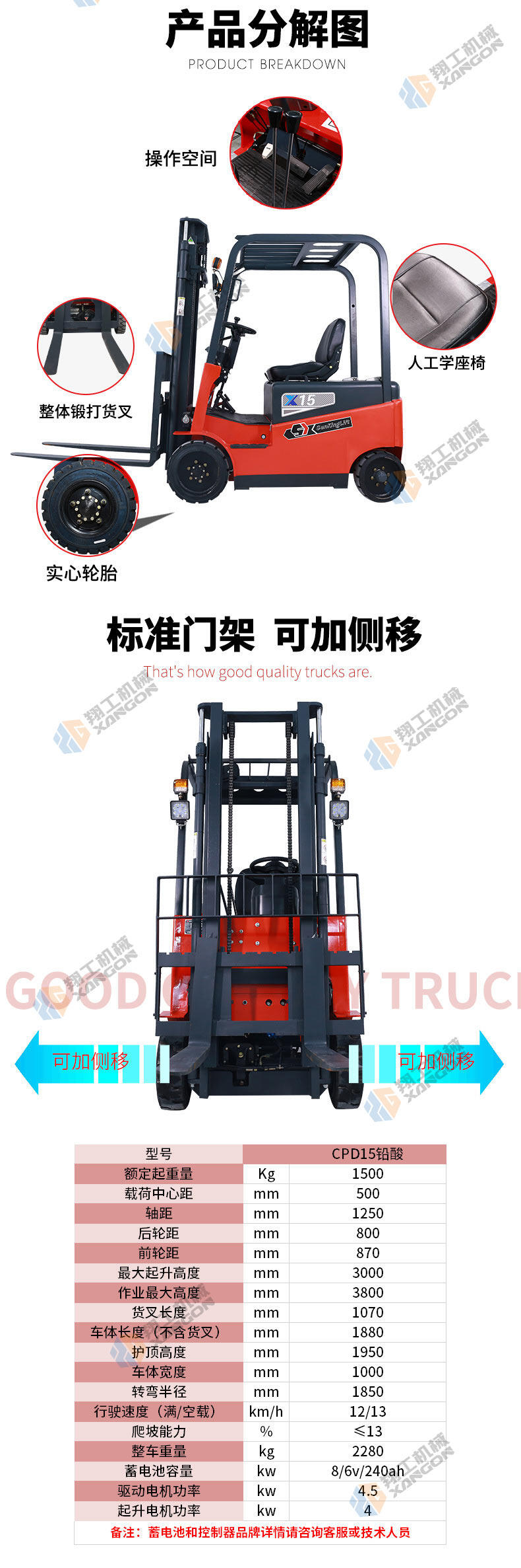 CPD1.5噸鉛酸四輪堆高車座駕式電動叉車