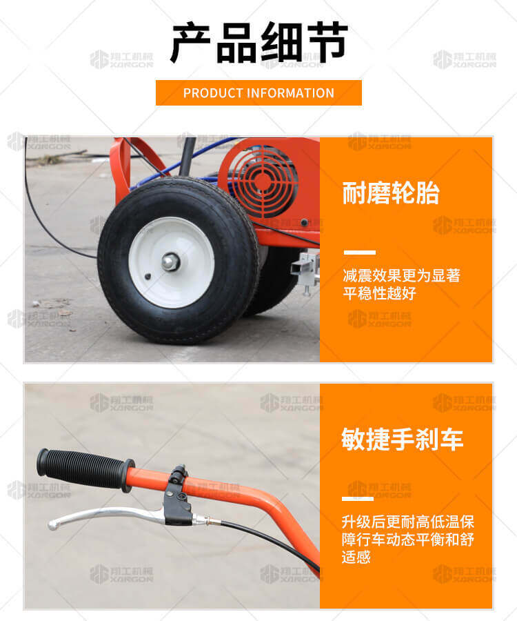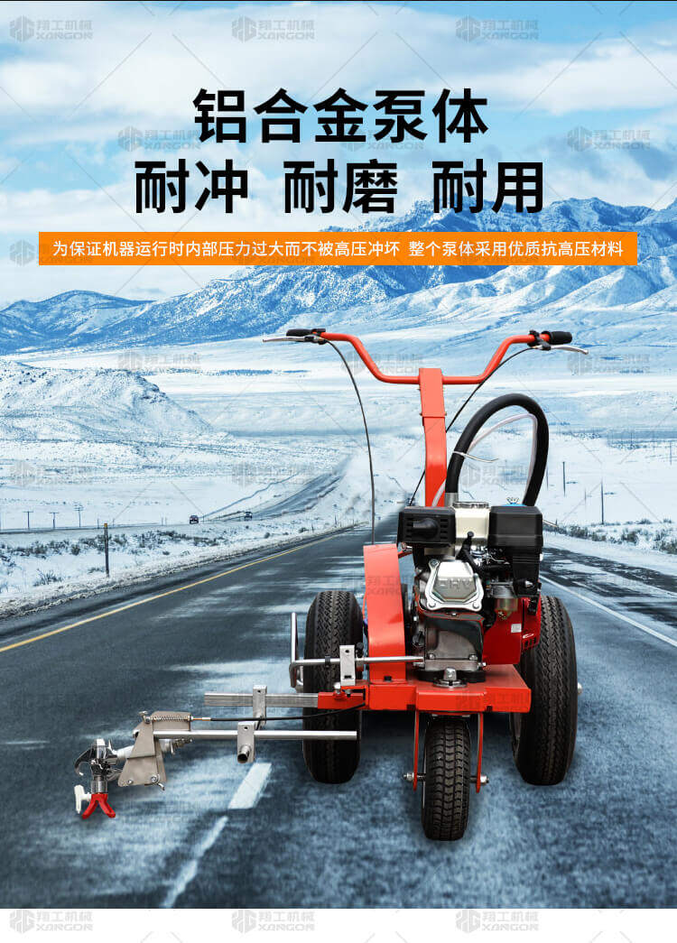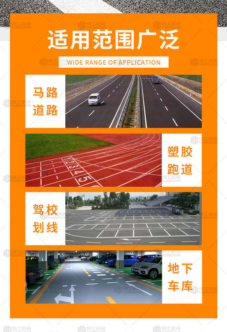 小型手推式道路劃線機是一種在道路、停車場、廣場和跑道等平整地面上劃出不同約束、指引和警示等規(guī)則限制標志的路面施工機械。最常見的就是在馬路上劃斑馬線,在路上劃車庫線、停車線等等應用于小型工程、短途施工,活動方便,靈活操作。 道路劃線機有冷噴式和熱熔式兩大類,冷噴式操作方便,施工快捷,可連續(xù)快速施工,越來越受到用戶青睞。熱熔式要帶上熱熔高溫爐等諸多輔助設施,施工時要間歇地從熱熔高溫爐取料,施工速度很慢,操作便捷性不夠且效率低,但一次成膜較厚。目前,比較常用的是冷噴手推式劃線機,它可運用于一般公路中小工程,運用于廠區(qū)或地下室小工程劃線施工。