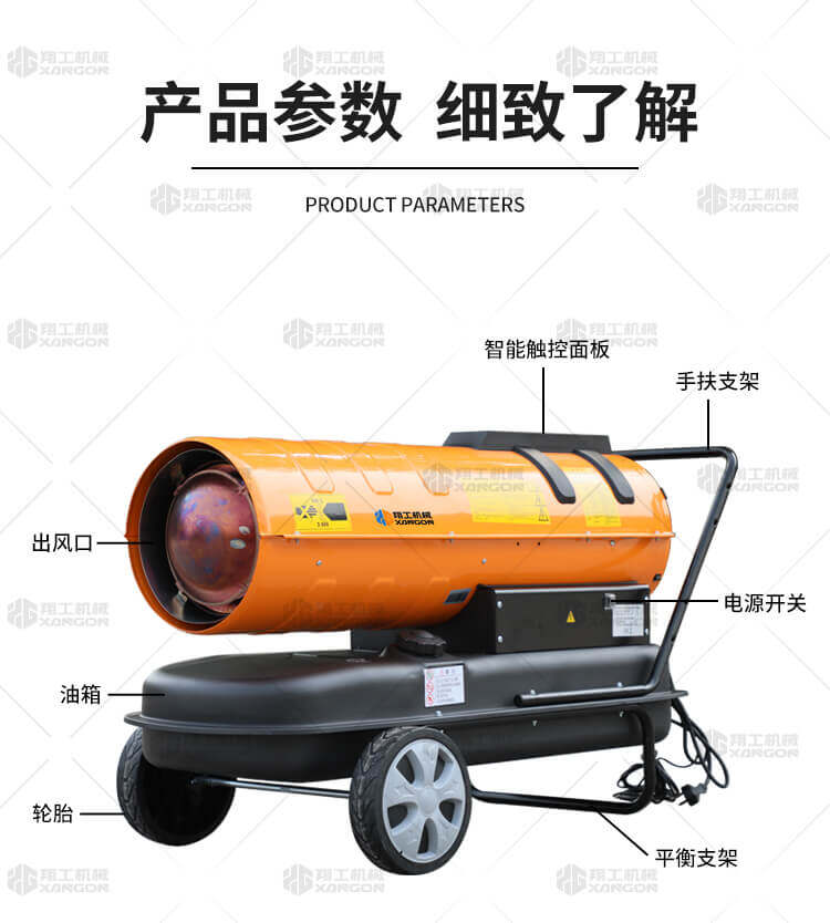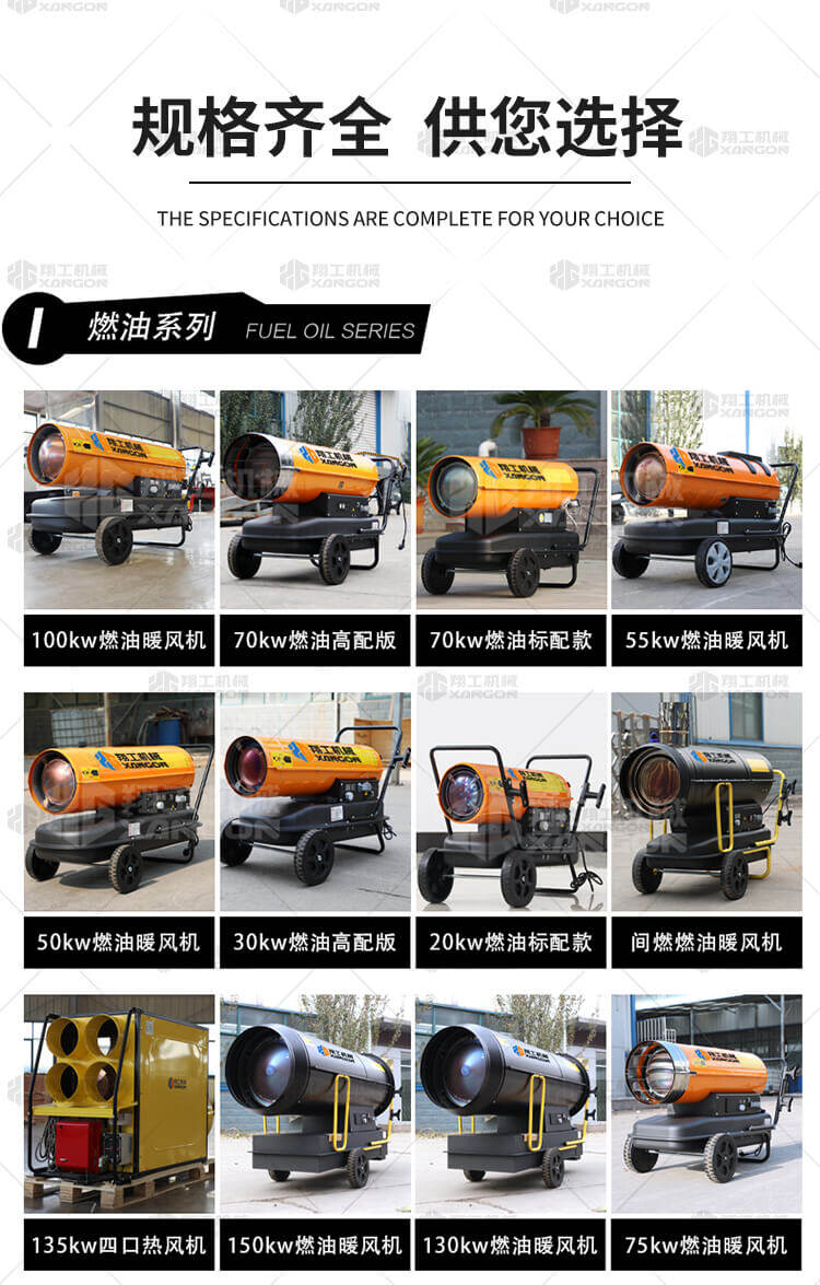 燃油暖風機可對禽畜取暖,育雛取暖,花卉養殖,大棚蔬菜瓜 果,商場,車間,展會進行取暖。