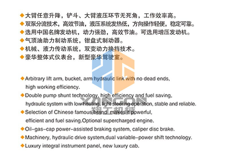 主要用于鏟裝土壤、砂石、石灰、煤炭等散狀物料,也可對礦石、硬土等作輕度鏟挖作業。換裝不同的輔助工作裝置還可進行推土、起重和其他物料如木材的裝卸作業。在道路、特別是在高等級公路施工中,裝載機用于路基工程的填挖、瀝青混合料和水泥混凝土料場的集料與裝料等作業。