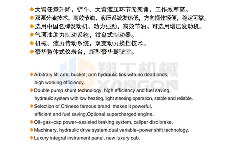 裝載機(jī)的作用: 主要用于鏟裝土壤、砂石、石灰、煤炭等散狀物料,也可對(duì)礦石、硬土等作輕度鏟挖作業(yè)。換裝不同的輔助工作裝置還可進(jìn)行推土、起重和其他物料如木材的裝卸作業(yè)。在道路、特別是在高等級(jí)公路施工中,裝載機(jī)用于路基工程的填挖、瀝青混合料和水泥混凝土料場(chǎng)的集料與裝料等作業(yè)。