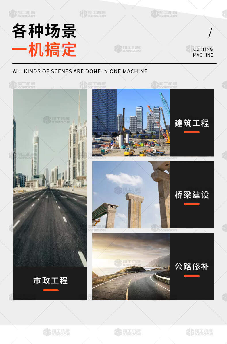 用于公路、市政、建筑、煤氣、通信部門修補(bǔ)公路或開挖溝槽時(shí)進(jìn)行路面切割。相對(duì)于電動(dòng)或柴油動(dòng)力的路面切割機(jī),操作輕巧省力,運(yùn)輸方便,工作效率高。