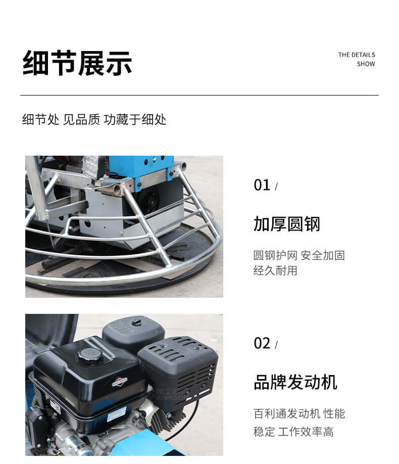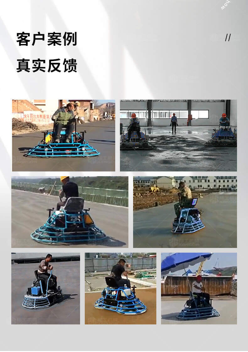 座駕式抹光機用于混凝土地面的提漿、壓實、抹平、抹光,座駕式操作大大降低了操作者勞動強度,提高了作業效率。