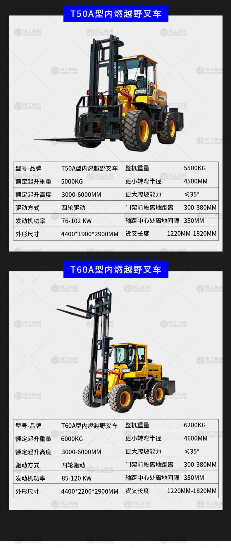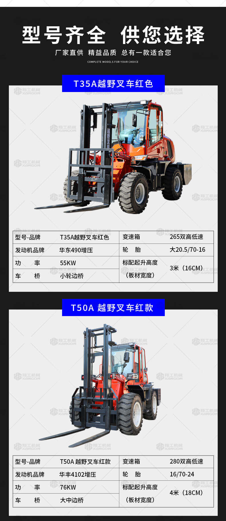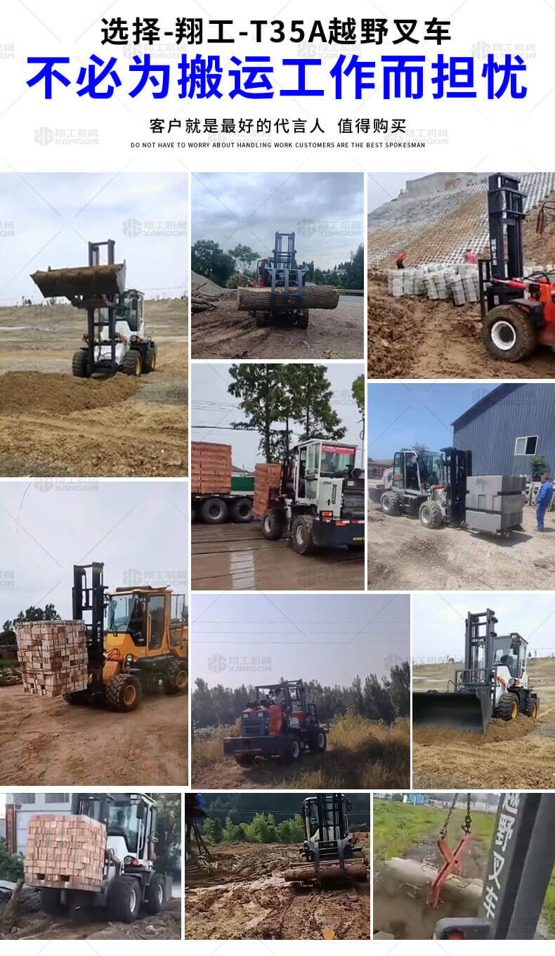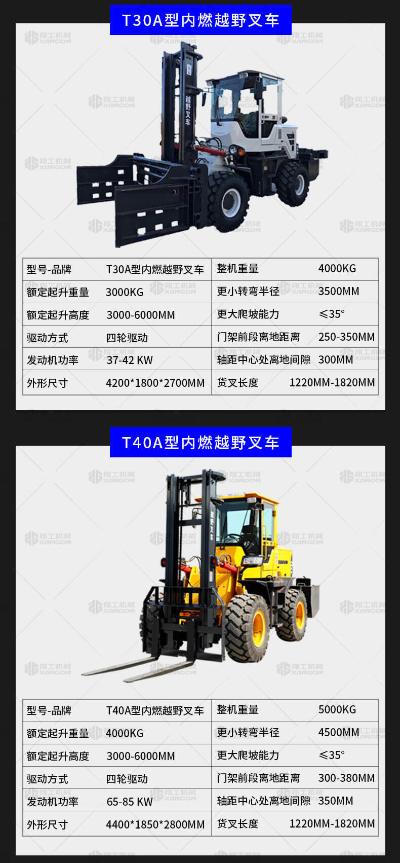 越野叉車可以在坡地和不平地面上進行貨物裝、卸、堆垛及搬運作業,具有良好的機動性、越野性可靠性。其功能多樣,可搭配側移器、調距叉、旋轉器、軟包夾、推出器、側翻叉、側翻斗、起重臂等工具完成不同的工作。