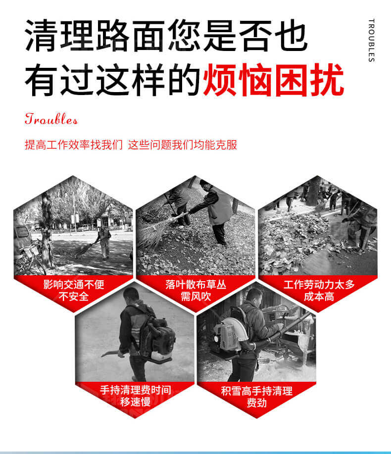 高速公路應急車道日常清掃;各種場合積雪、樹葉快速吹掃;結冰路面快速撒布融雪劑;