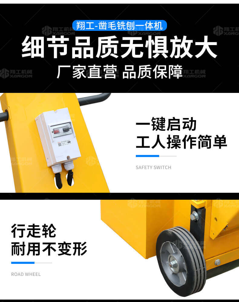 鑿毛銑刨一體機主要用于高速公路,高鐵,橋面及箱梁混凝土面層剔鑿,建筑物地面及市政工程混凝土表面鑿毛,修補,翻新,二次加固等。