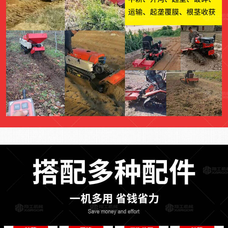 多功能旋耕林座駕式/遙控式/水旱兩用式,開溝/旋耕/打藥/起壟/回填