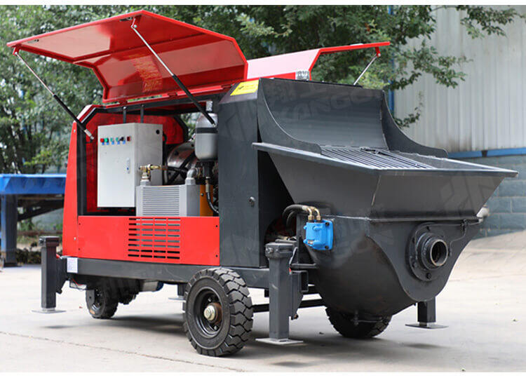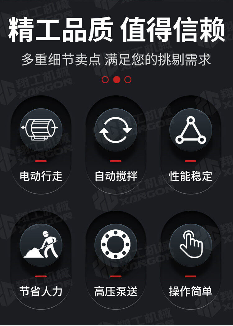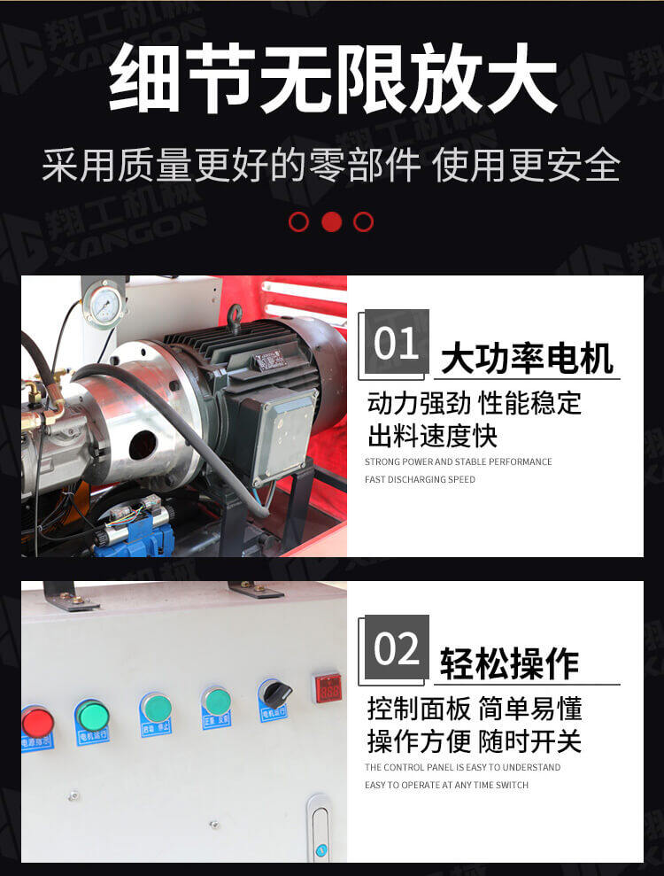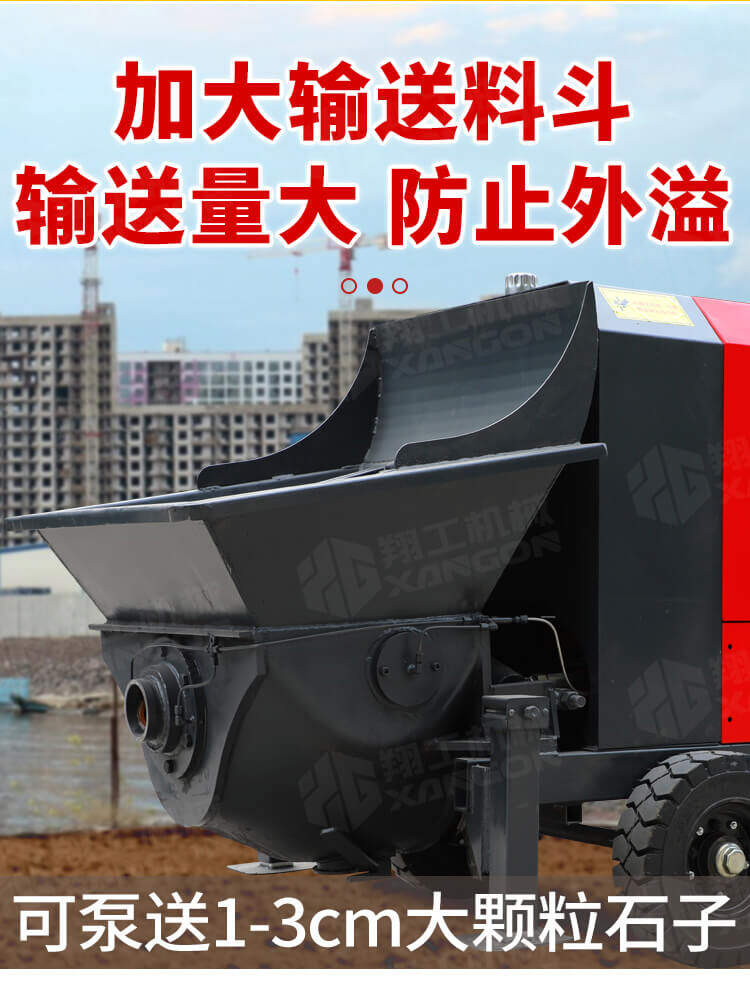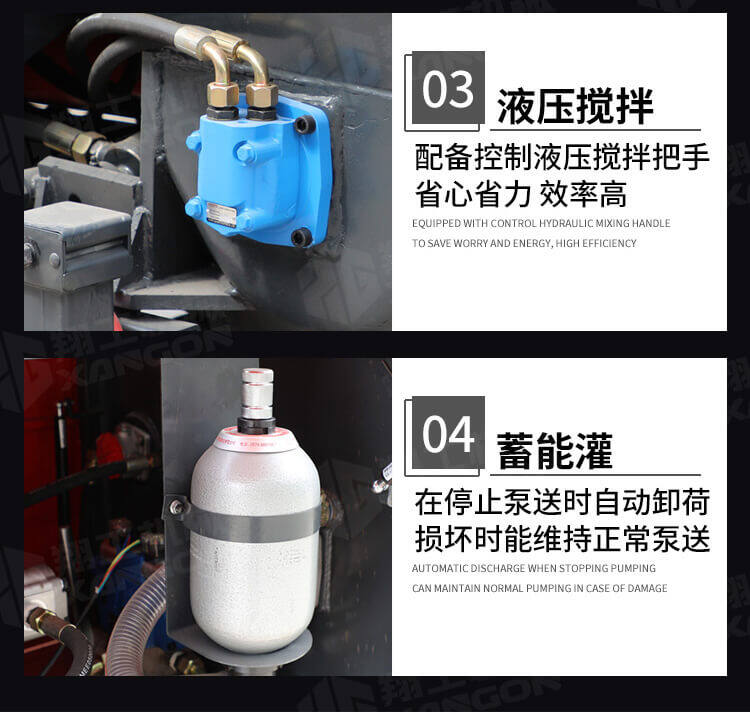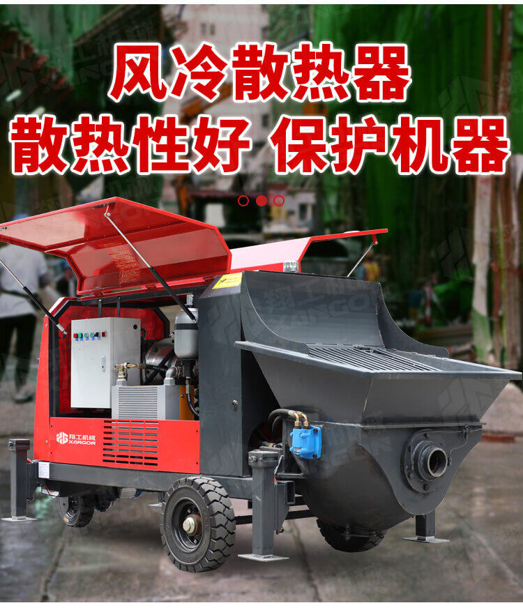 采用獨創(chuàng)的泵車尾輪驅動系統(tǒng)輕松解決移動時帶來的各種困難;采用雙排風冷散熱系統(tǒng)散熱效果更好,液壓系統(tǒng)采用壓力更高,性能更穩(wěn)定的柱塞式自動變量主油泵,采用先進的三維立體壓模一體式自動攪拌料斗可輸送機制砂,高標號混凝土,有效緩解積料問題。