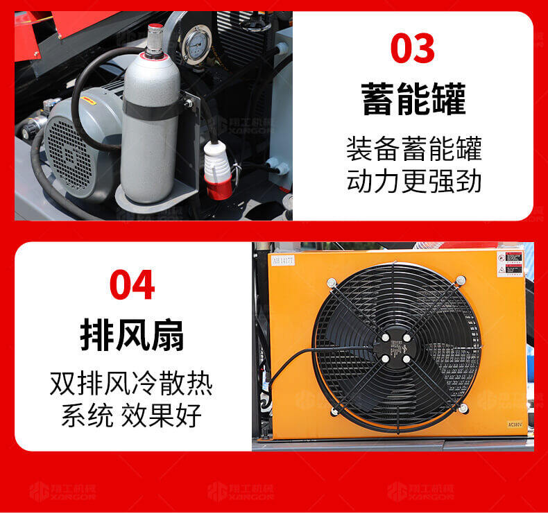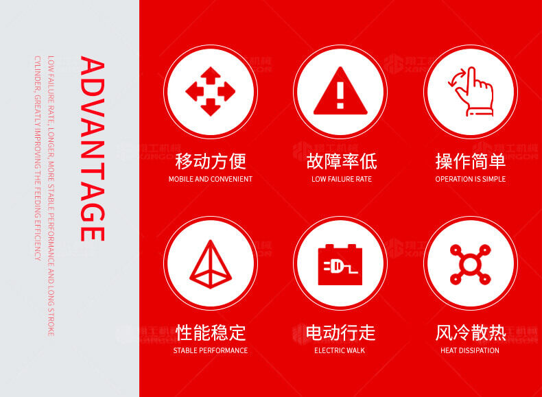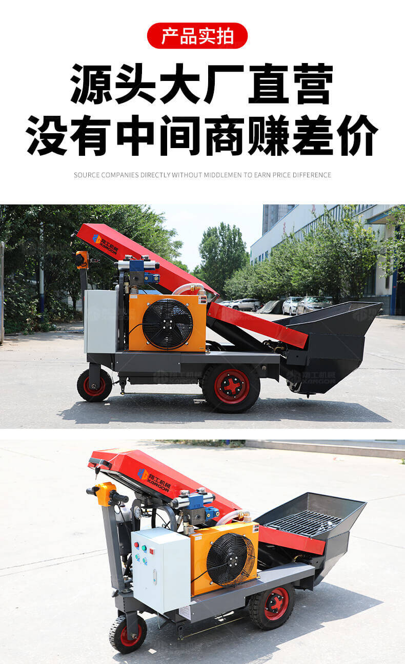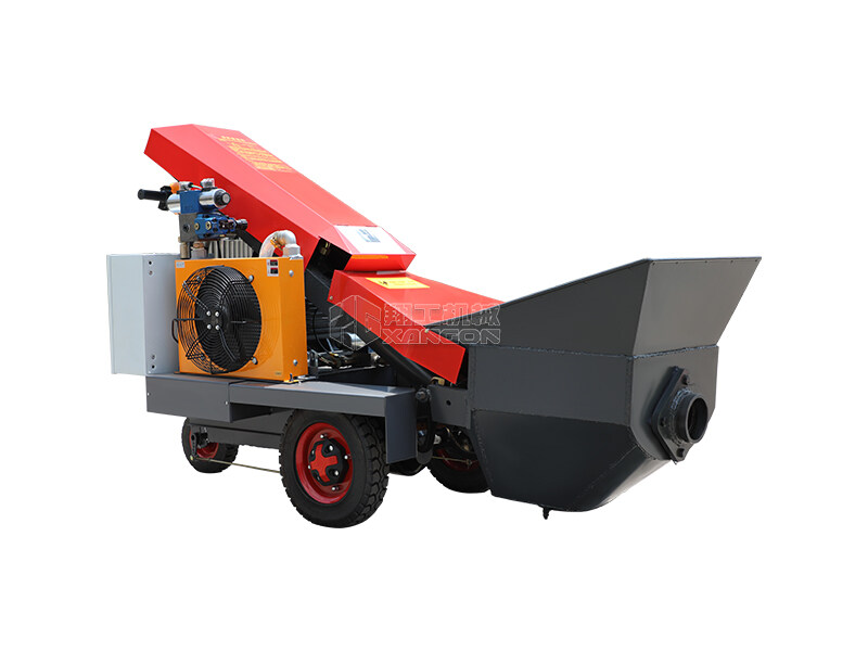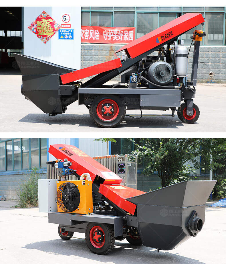 采用電動行走底盤,斜體式布局升降料斗,采用雙排風冷散熱系統散熱效果更好,液壓系統采用國內知名廠商葉片泵,故障率低,壽命更長,性能更穩定,超長行程料缸大大提高了輸送效率。