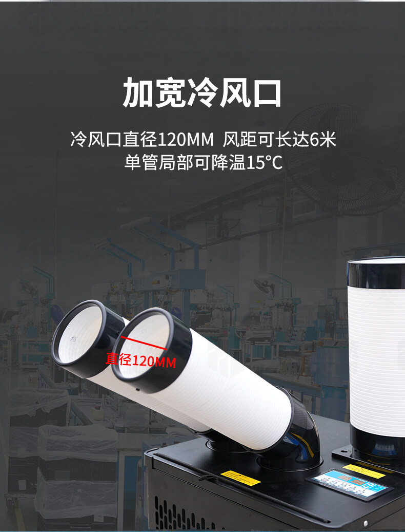 適應各種大面積場所快速降溫:辦公場所降溫 汽車維修降溫 車間制冷 室內制冷 集裝箱制冷 線上降溫 廚房降溫 車間崗位降溫