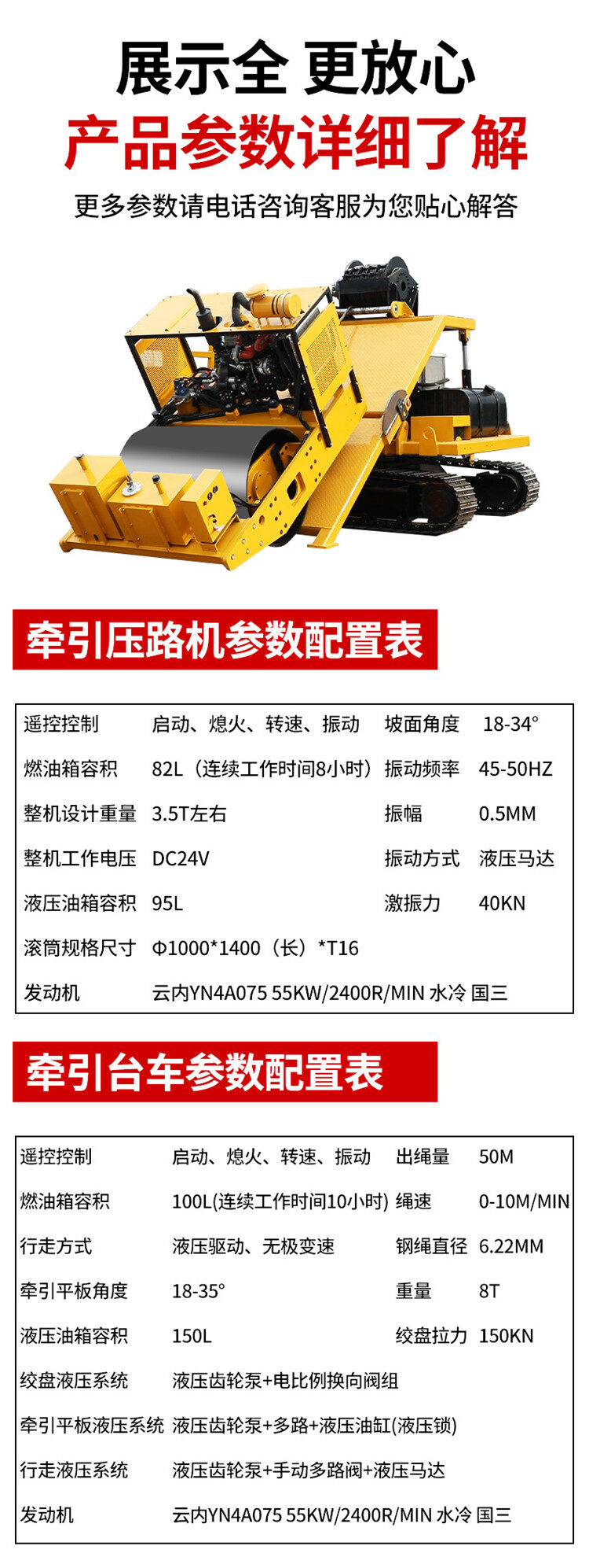 帶絞車斜坡壓路機(jī)是由壓路機(jī)和牽引絞車共同組成的協(xié)同工作的壓路機(jī),使用于大距離,大傾角的坡面工作。