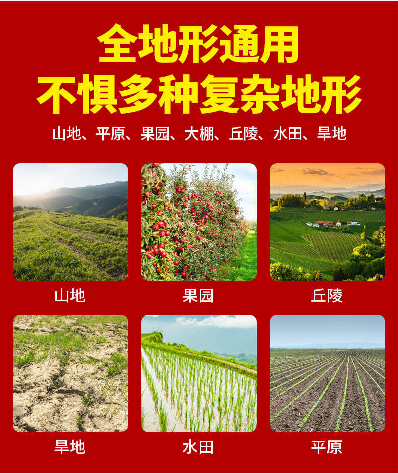 旋耕機全地形通用,不懼多種復雜地形。更多詳情請撥打全國免費電話400-660-9888