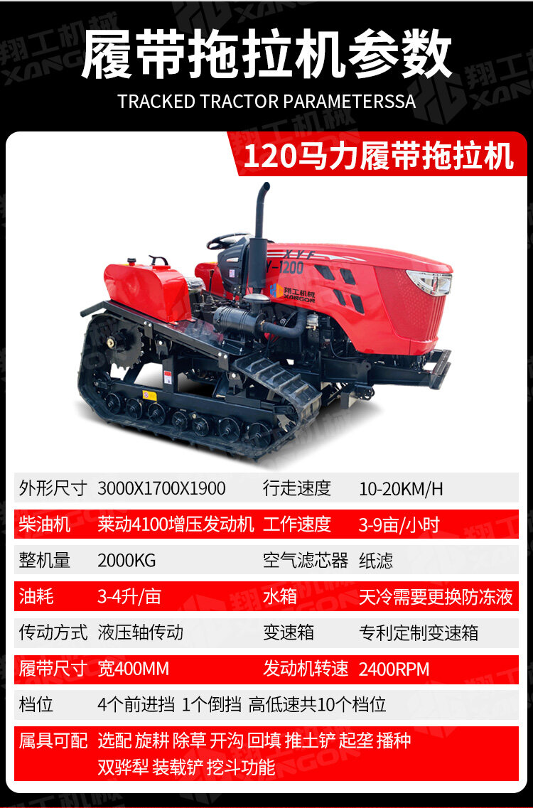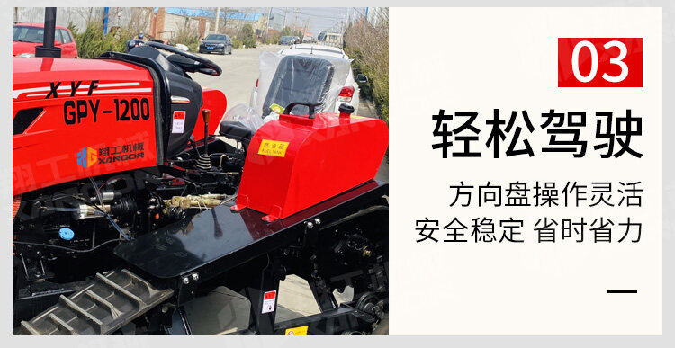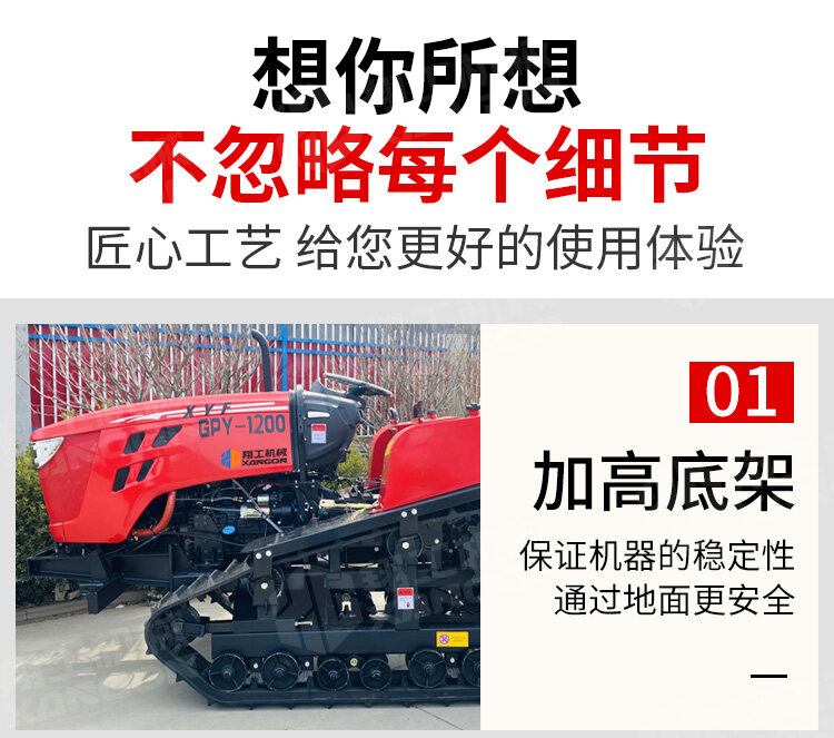 本款120馬力履帶旋耕機,動力強勁,作業高效。采用重型履帶底盤,接地壓力小,通過性與穩定性極佳,輕松應對水田、泥濘等復雜工況。其深耕效果好,碎土率高,能一次性完成旋耕、碎土作業,是規模化農田耕整地的理想選擇。