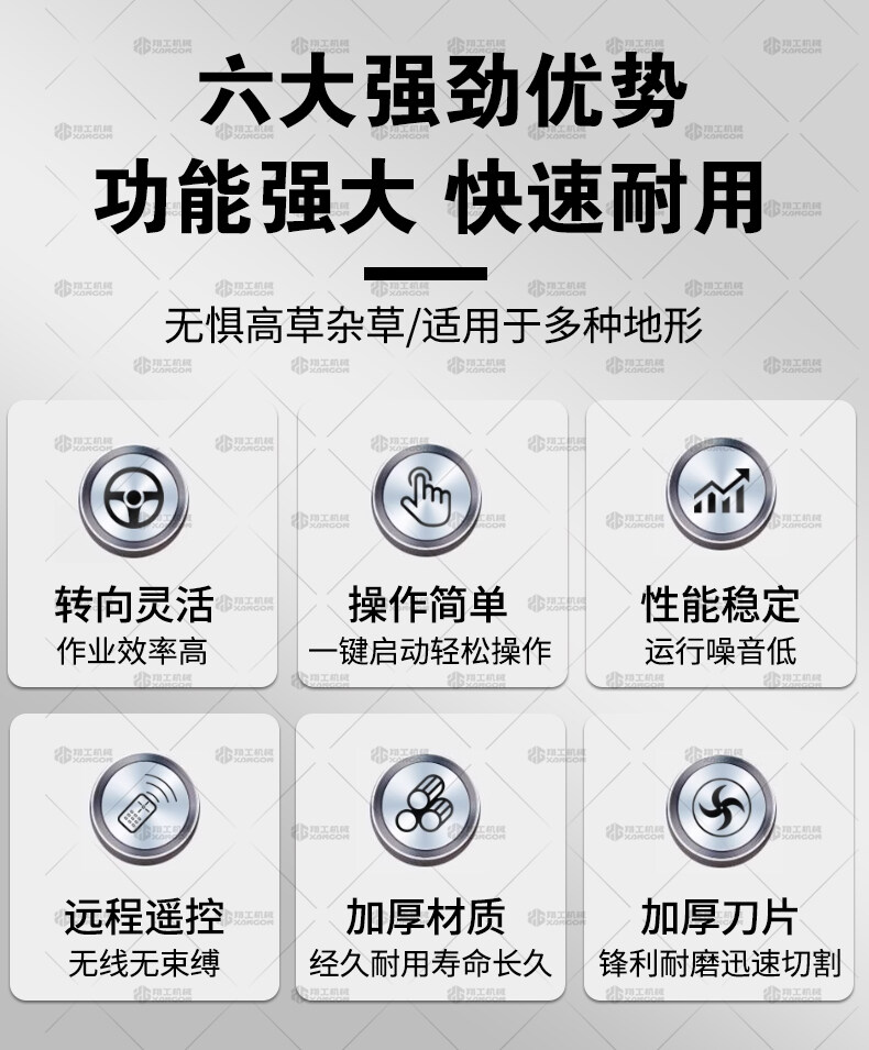 800坦克款割草機是一款專為復雜地形、高強度作業設計的重型遙控割草機,采用坦克式履帶底盤,具備極強的通過性和穩定性,適用于陡坡、泥地、灌木叢等傳統割草機難以作業的場景