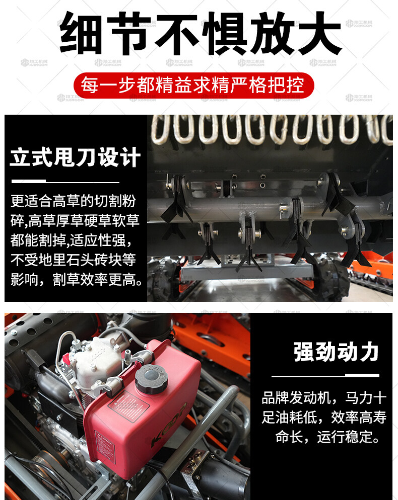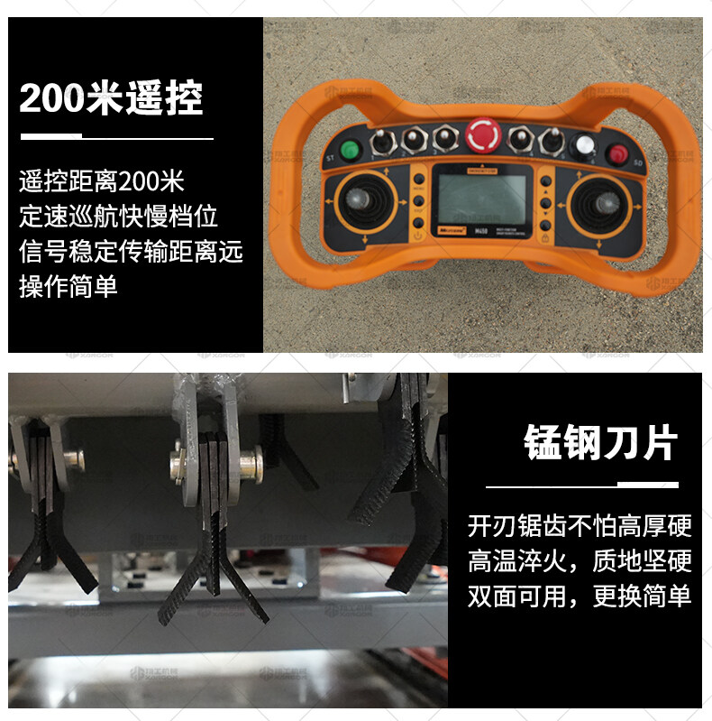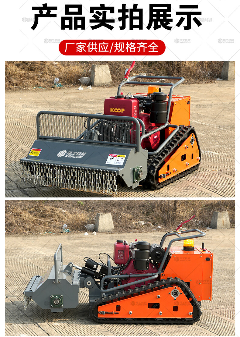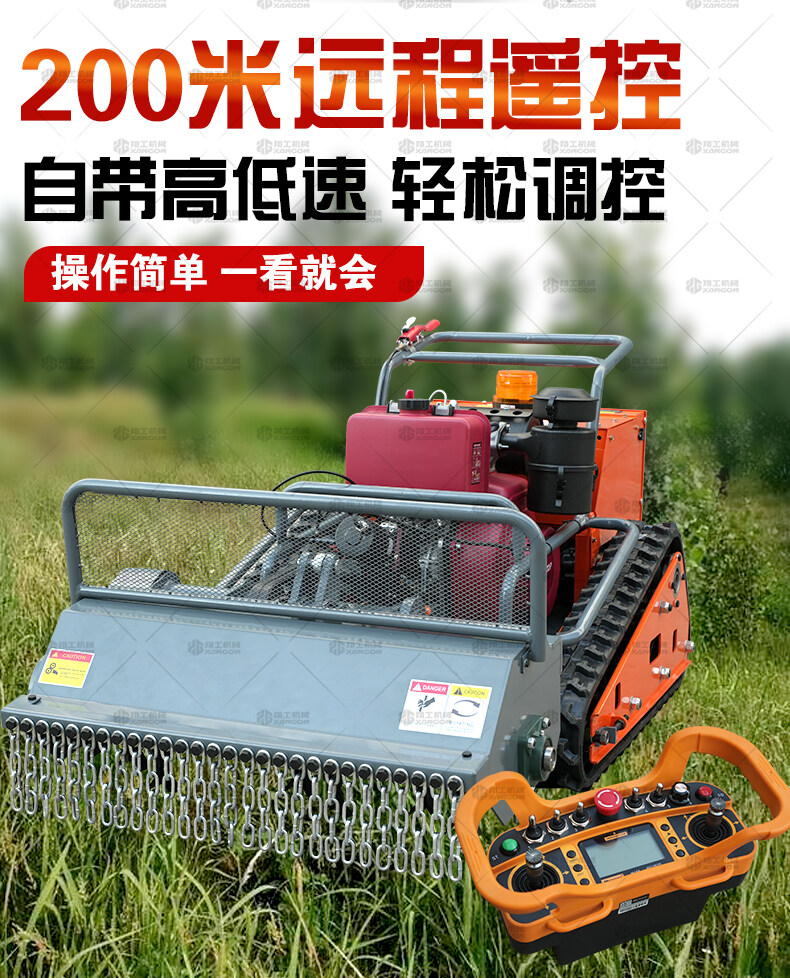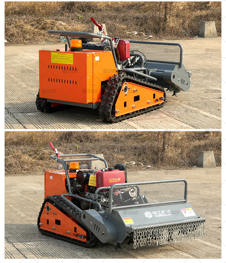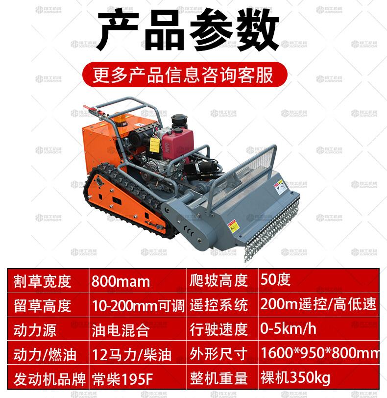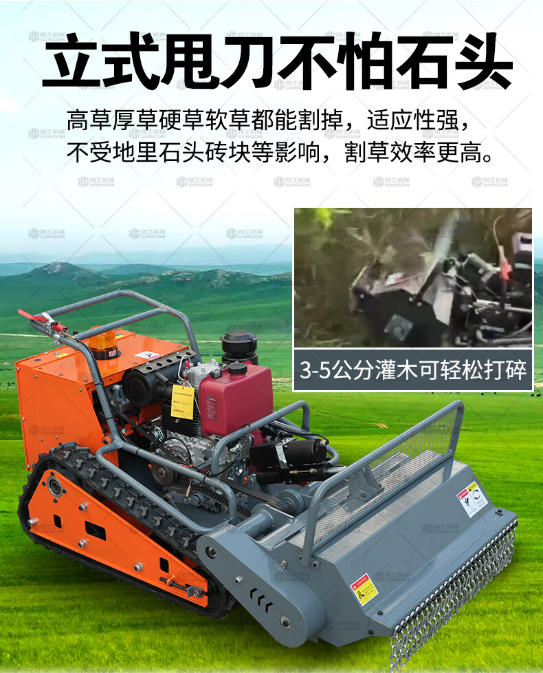 12馬力遙控碎草機是一款專為大面積雜草、灌木、秸稈粉碎設計的高性能農業/園林機械,結合大馬力發動機與智能遙控技術,可高效處理粗硬植被,適用于農田、果園、荒地、道路綠化帶等場景。