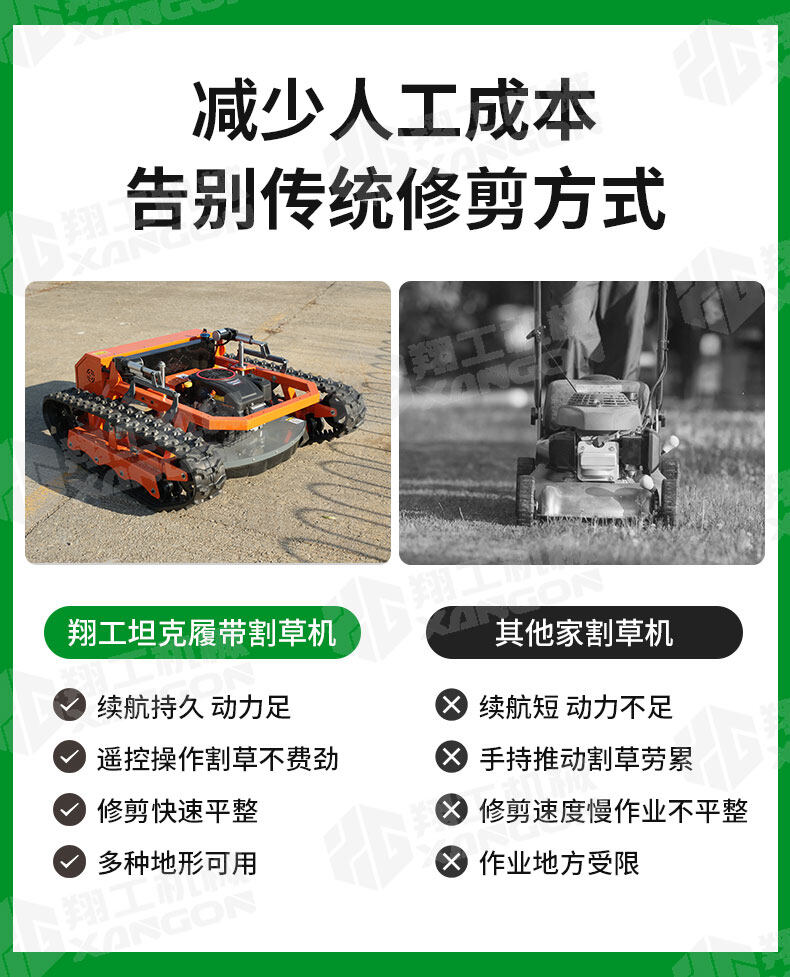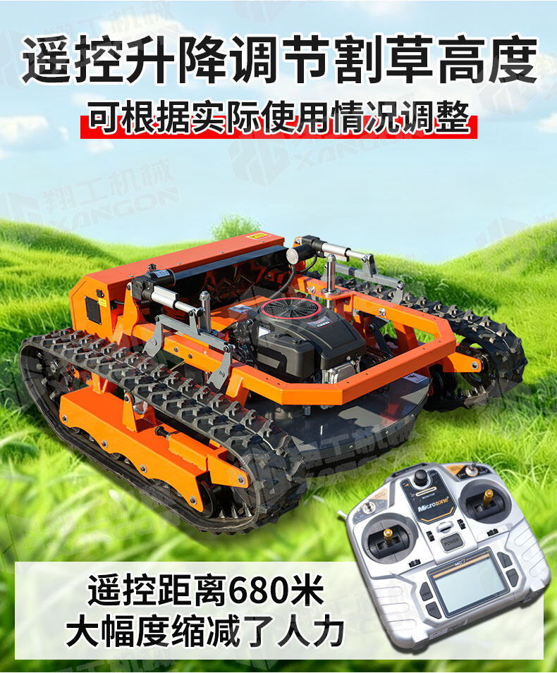 這是一款顛覆傳統的遙控坦克割草機。它采用堅固的履帶底盤,輕松征服陡坡、濕滑草地等復雜地形。無線遙控操作,讓您遠離烈日與噪音,在樹蔭下即可精準完成修剪。動力強勁,效率遠超傳統手推式,是打理大型或不平整土地的理想智能工具。