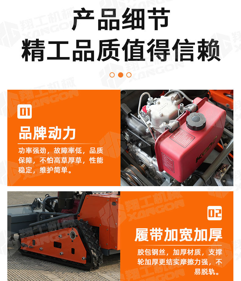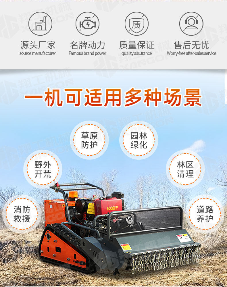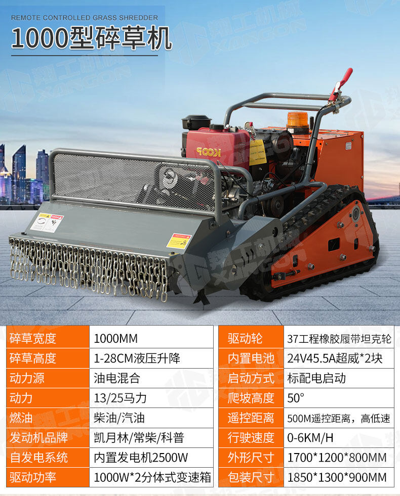 XG-1000遙控碎草機,是一款革新園林養護的智能裝備。它融合遠程遙控與自主碎草功能,操作便捷省力。設備動力強勁,碎草細膩,能直接將雜草轉化為有機綠肥,促進草坪健康生長。適用于大型草坪、莊園及專業綠地,作業高效,是提升養護品質、實現綠色循環的理想選擇。