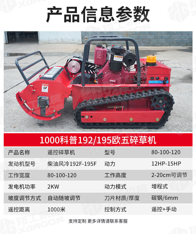 本款柴油遙控割草機是一款動力強勁、專為惡劣工況設計的大型專業設備。它采用高性能柴油發動機,扭矩大,續航持久,能輕松應對陡坡、濕地等復雜地形。先進的無線遙控技術確保了操作人員的安全,實現了遠距離高效、精準割草。特別適用于園林綠化、堤壩養護、機場周邊等大面積和危險區域的除草作業。