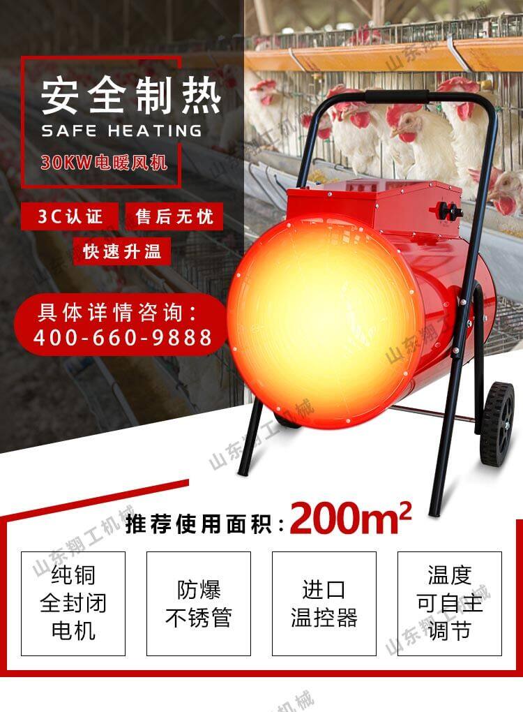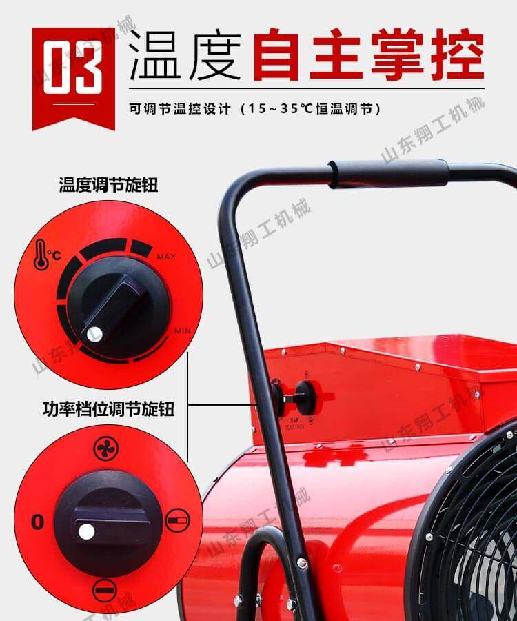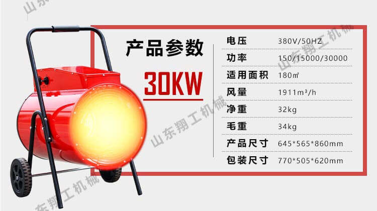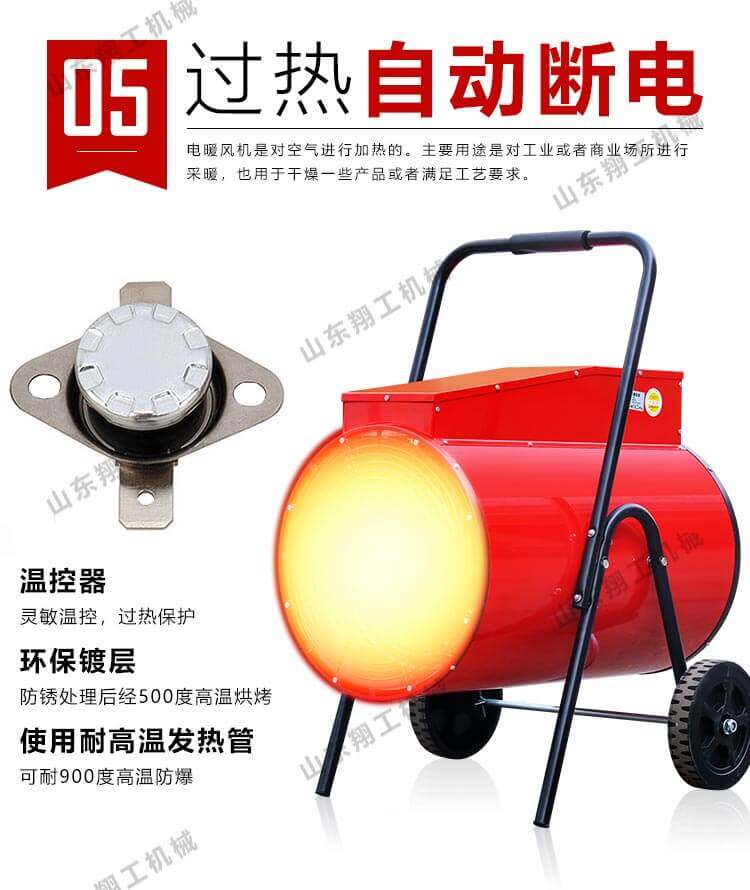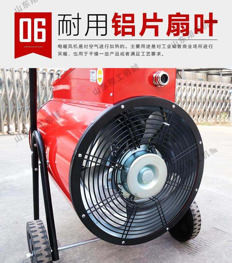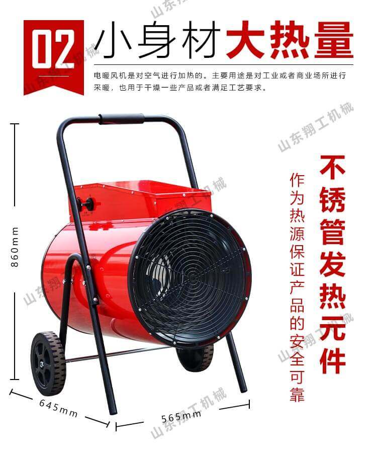 暖風機優點: 1、純銅全封閉電機 2、防爆不銹管(不銹管發熱元件作熱源保證產品的可靠) 3、取暖溫度可自動調節(調節功率) 電暖風機是由通風機,電動機及散熱器組合而成的聯合機組。適用于空氣允許再循環的各種類型車間,當空氣中不含灰塵,易燃性的氣體時,可作為循環空氣采暖之用。